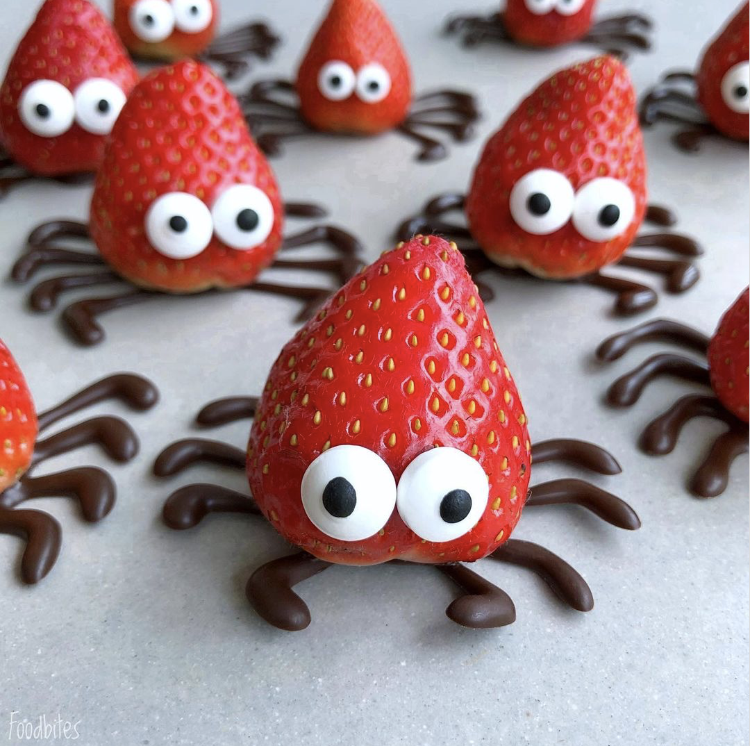 4. Otra opción es usar fresas cortadas para hacer divertidas lenguas dentro de la manzana.